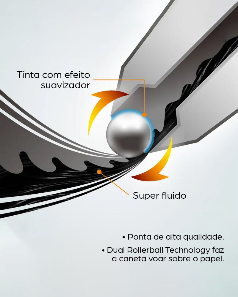 O sistema de fluxo de tinta suave e o efeito especial de amortecimento da tinta minimizam o atrito, proporcionando uma experiência de escrita confortável e fluida.